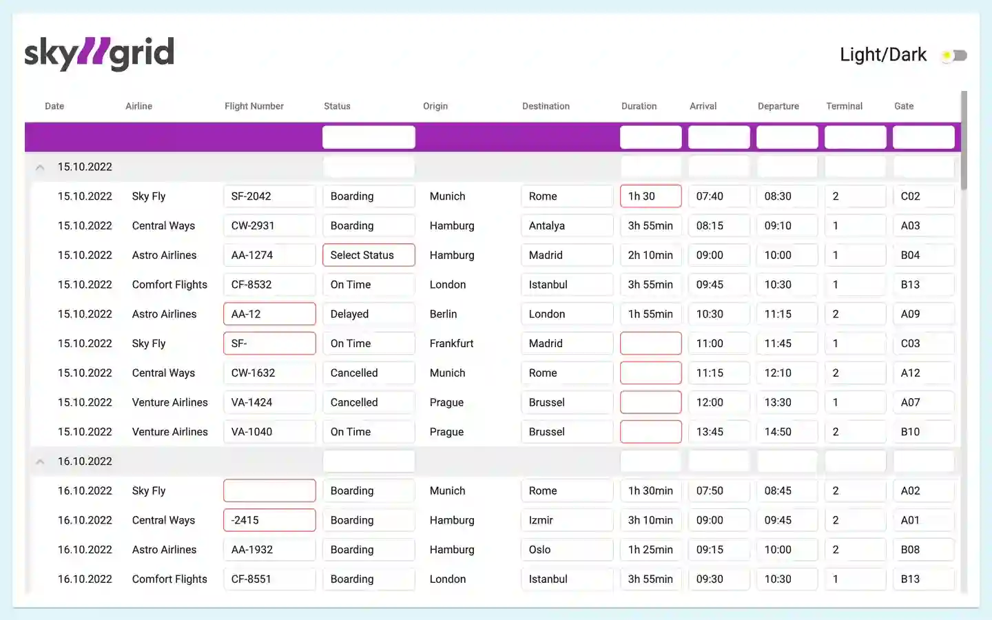 Datenpflege. Verfügbare Lösungen wie AG-Grid wurden evaluiert, jedoch aufgrund der Komplexität wurde die Entwicklung