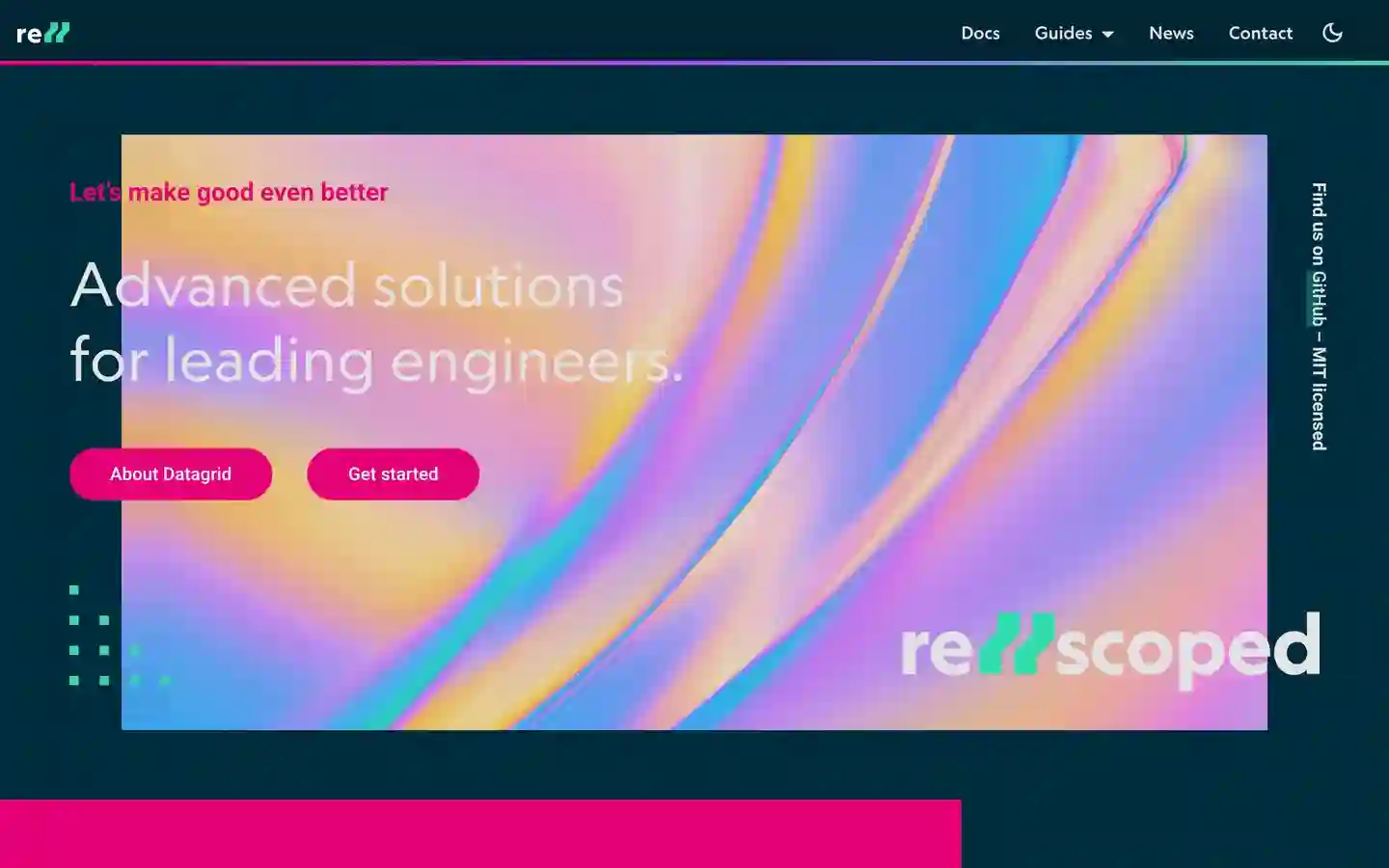 Die rescoped.io Dokumentationsplattform ist die zentrale Website für alle avodaq Open-Source-Projekte unter dem rescoped-Label. Die React-basierte Dokumentationsseite vereint technische Dokumentation mit ansprechender Präsentation für das rescoped Datagrid und zukünftige Komponenten, mit Fokus auf intuitive Bedienung und professionelle Optik zur Ansprache von Entwicklern und Entscheidungsträgern.